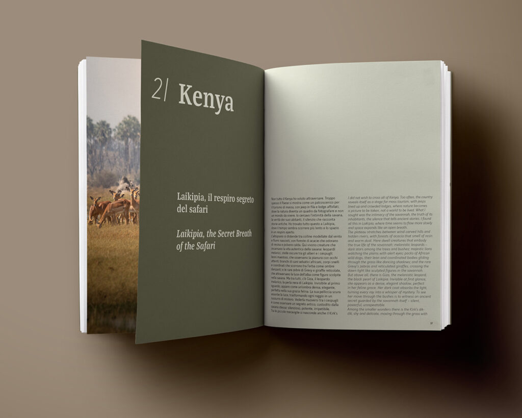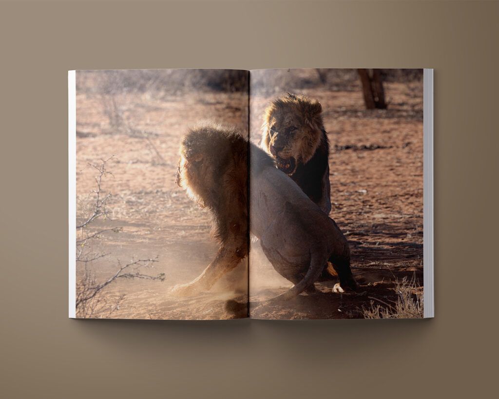 Against the backdrop of a pristine and multifaceted Africa, the viewer is called upon to immerse himself in these depictions of the predator universe, always poised between taking the side of the victim or that of the perpetrator. In the freedom of interpretation left to the reader, the possibility opens up for a novel alternative to the usual way of looking at wildlife photography.