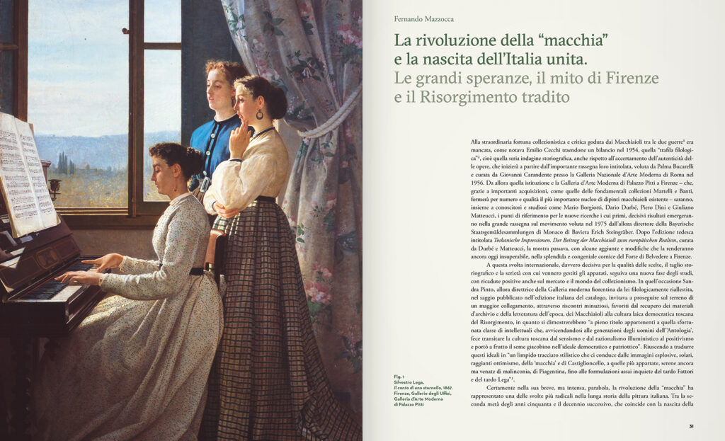 The different personalities, from Silvestro Lega to Giovanni Fattori, from Vincenzo Cabianca to Odoardo Borrani, from Telemaco Signorini to Giuseppe Abbati and Raffaello Sernesi, are outlined, united by an innovative painting technique, the “macchia,” with the ambition to create a common and shared pictorial language in which a country that aspired to achieve cultural unity along with political unity could be recognized.
