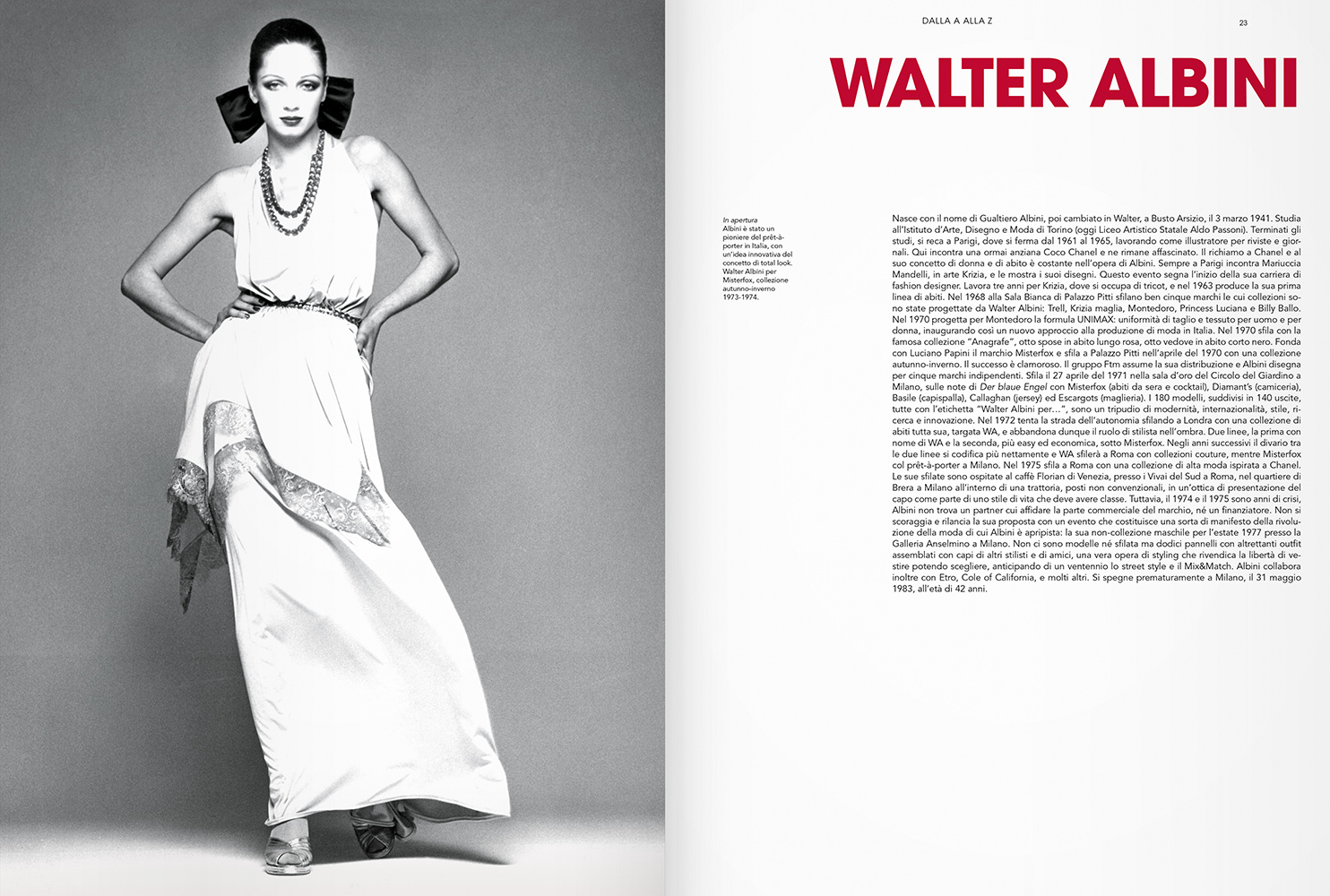Il volume presenta in ordine alfabetico i personaggi, i marchi, i movimenti e gli stili che hanno fatto la storia della moda da Charles Frederick Worth, primo couturier in senso moderno, ai giorni nostri.