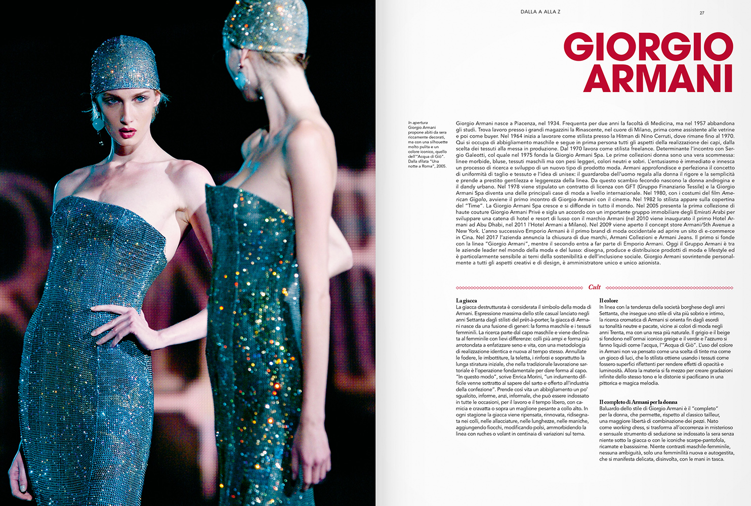 Stilisti, creativi e couturier vengono raccontati, oltre che nelle linee generali della biografia, anche cercando di restituire la loro ispirazione, la filosofia, i criteri di lavoro, le scelte estetiche, il gusto. I movimenti, gli stili, le tendenze, diventati ormai un fenomeno di massa e di costume, sono esaminati sia da un punto di vista storico, sia attraverso un’analisi dell’impatto sul sistema moda, fino all’influenza sulle passerelle.
